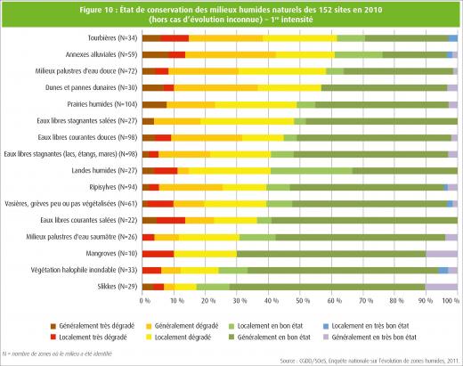 Une dynamique en faveur des zones humides est observée désormais depuis plusieurs années, avec notamment le renforcement des mesures de protection et de gestion, dans le cadre entre autres de Natura 2000. Cependant, 7% des habitats humides naturels d'intérêt communautaire évalués sur la période 2007-2012 sont dans un état de conservation favorable.