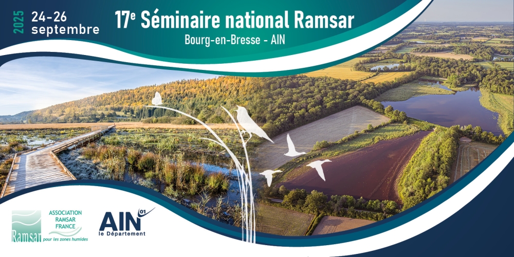 Préserver les zones humides : de la mobilisation à l'action 24, 25, 26 septembre 2025 - Bourg-en-Bresse (Ain) Sites Ramsar de La Dombes, des Marais et tourbières des montagnes du Bugey et du Lac du Bourget, Marais de Chautagne et de Lavours Co-organisé avec : Département de l'Ain |