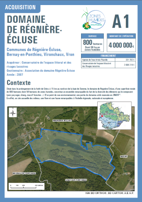 3. Résultats et suivi : L'opération présente un intérêt majeur en terme de préservation d'un corridor écologique par la maîtrise foncière. Pour la gestion et la valorisation du domaine de Régnière-Écluse, une association de type loi 1901 a été créée le 19 novembre 2007.